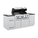 Built-in oven lights, illuminated control knobs, 6 professional cast stainless steel cooking grids, stainless steel warming rack, stainless steel Flav-R-Wave™ cooking system, and electronic ignition. The S 690i features 304 stainless steel utility cabinet drawers with tank holder (LP) and granite counter top.
