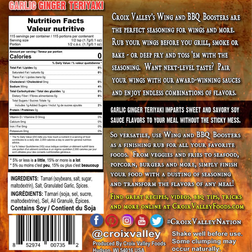 Afficher tous les détailsPréparez-vous à réveiller vos papilles gustatives avec le mélange d'épices Croix Valley Garlic Ginger Teriyaki Wing and BBQ Booster! Ce mélange d'...
